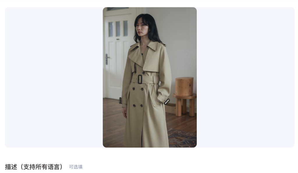 第一步,将平铺图上传到【AI模特】,生成合适的商品图,这一步相信很多老板们都熟悉了,还需要教程的老板们可以去【AI模特】区域,学习一下哦~