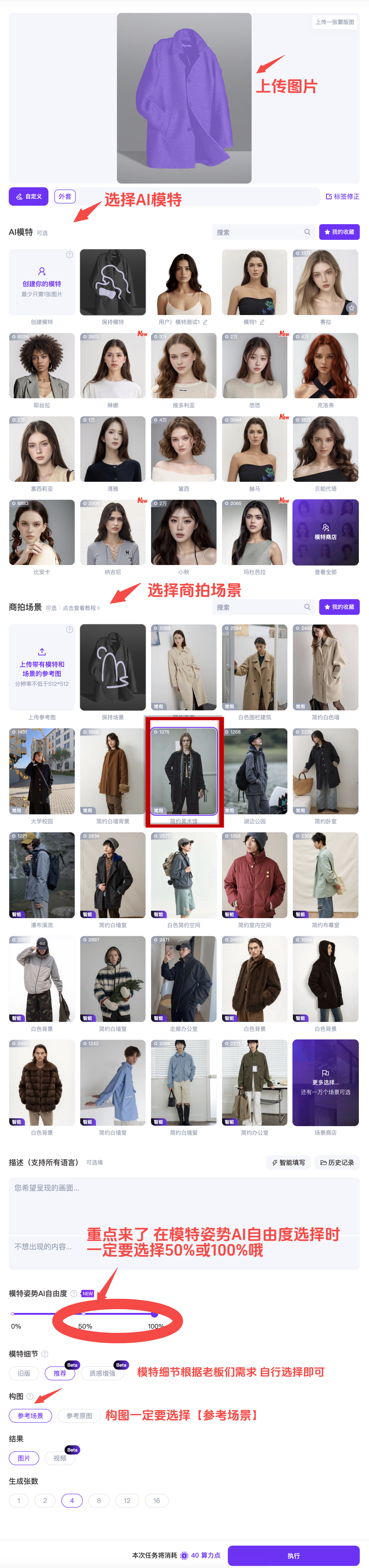和咱们平铺图操作步骤一样的,如果不熟悉平铺图流程的老板们也可以根据咱们的3D图操作流程,学习一遍哦~下面这两篇文章也是平铺图小技巧,需要的老板们可以点击查看【AI小技巧|每周一篇活用小技巧之【创建场景保持模特】【AI工具|巧妙运用AI模特+真人转人台】