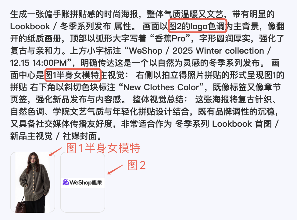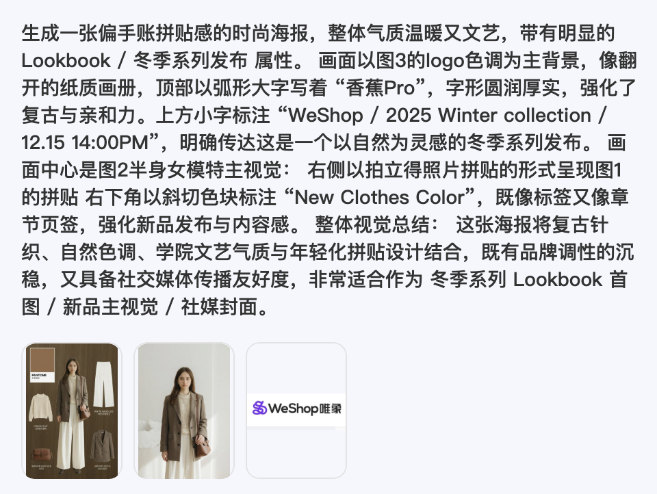 生成Lookbook,后,再上传到咱们的香蕉Pro,用刚刚的咒语进行生成。
