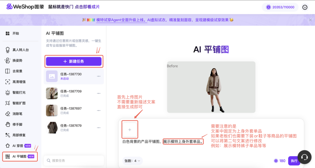咱们全新的 【AI 穿搭】&【AI 平铺图】 功能已经重磅上线!