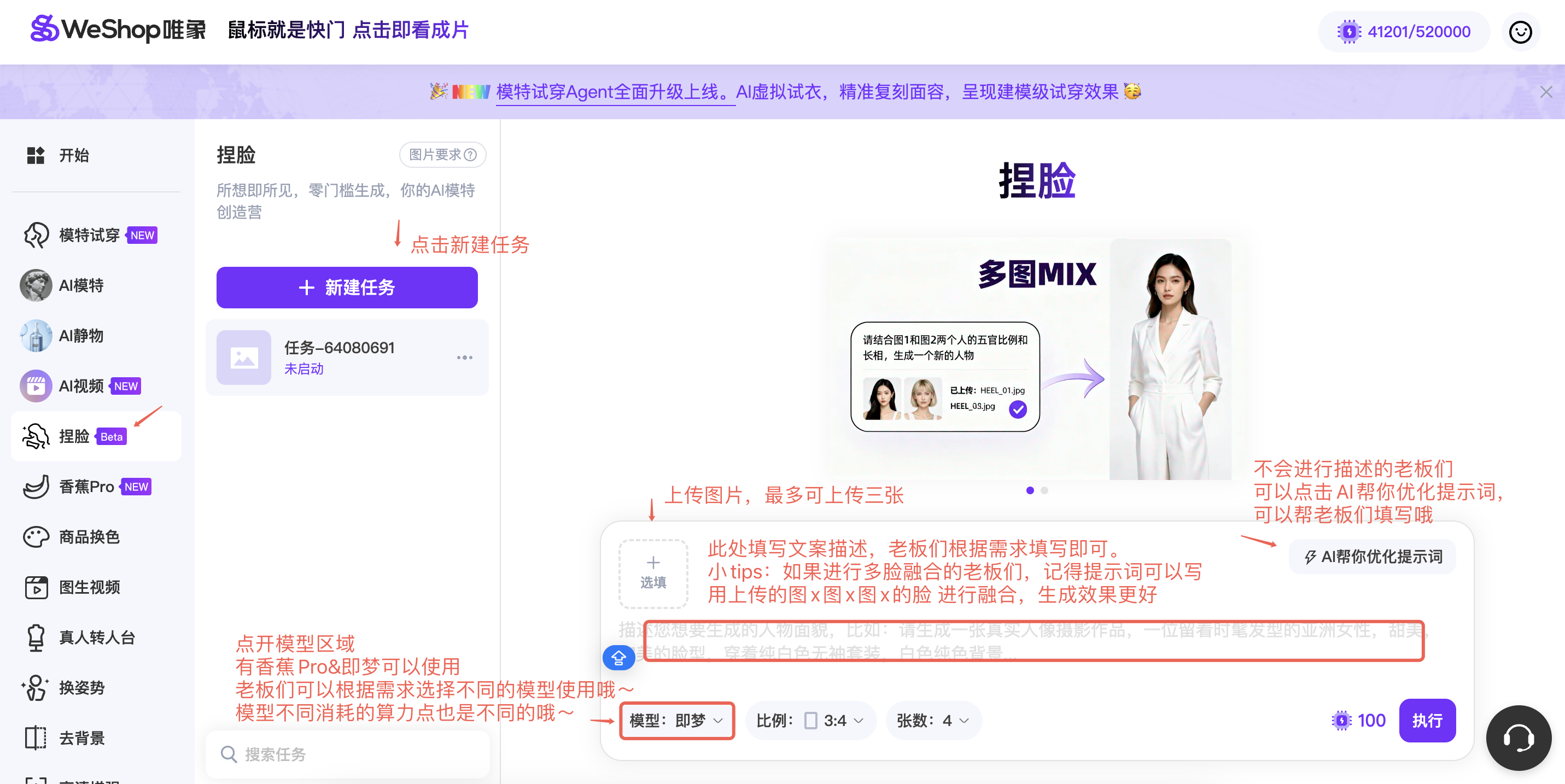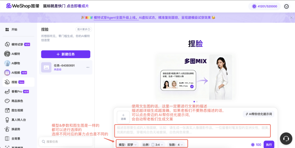 基于此,WeShop 全新推出 【捏脸】Agent