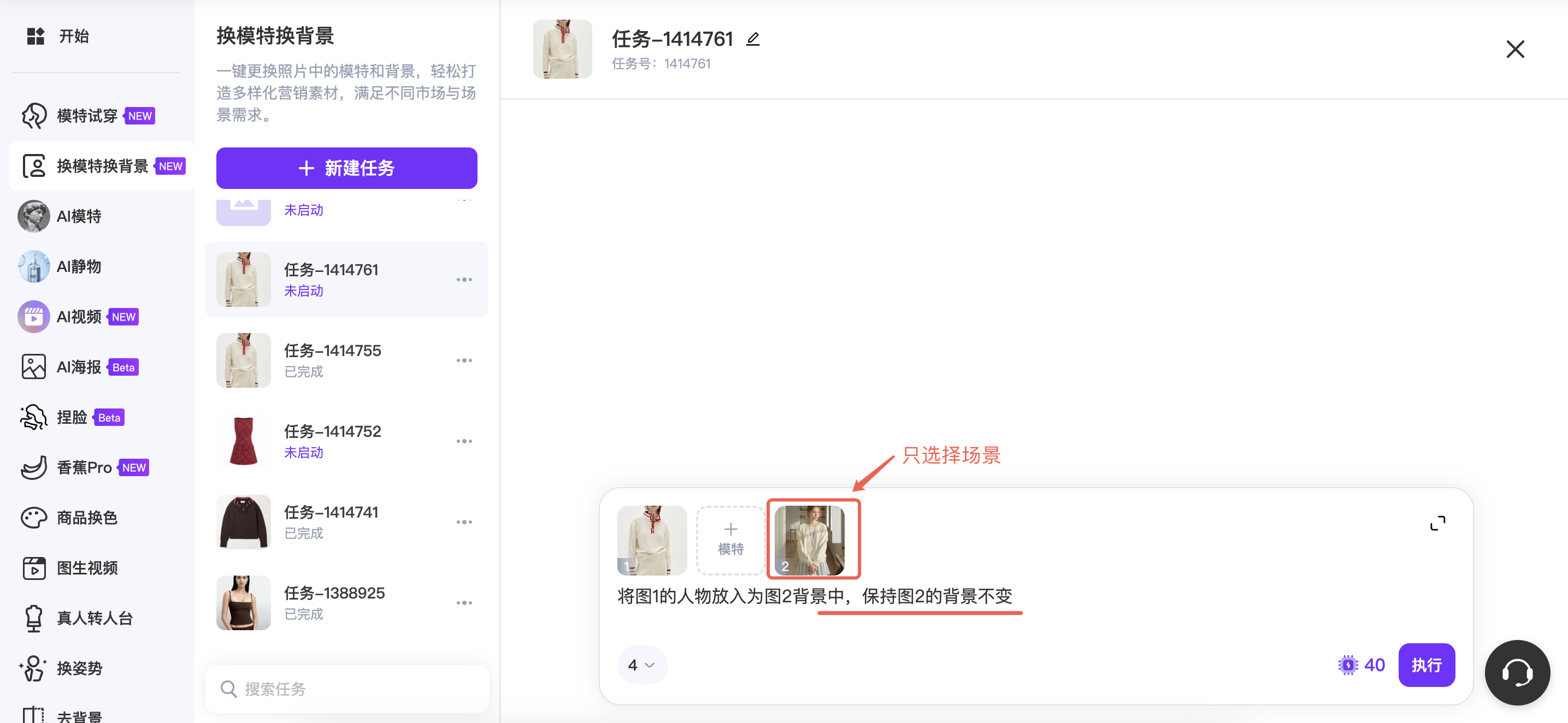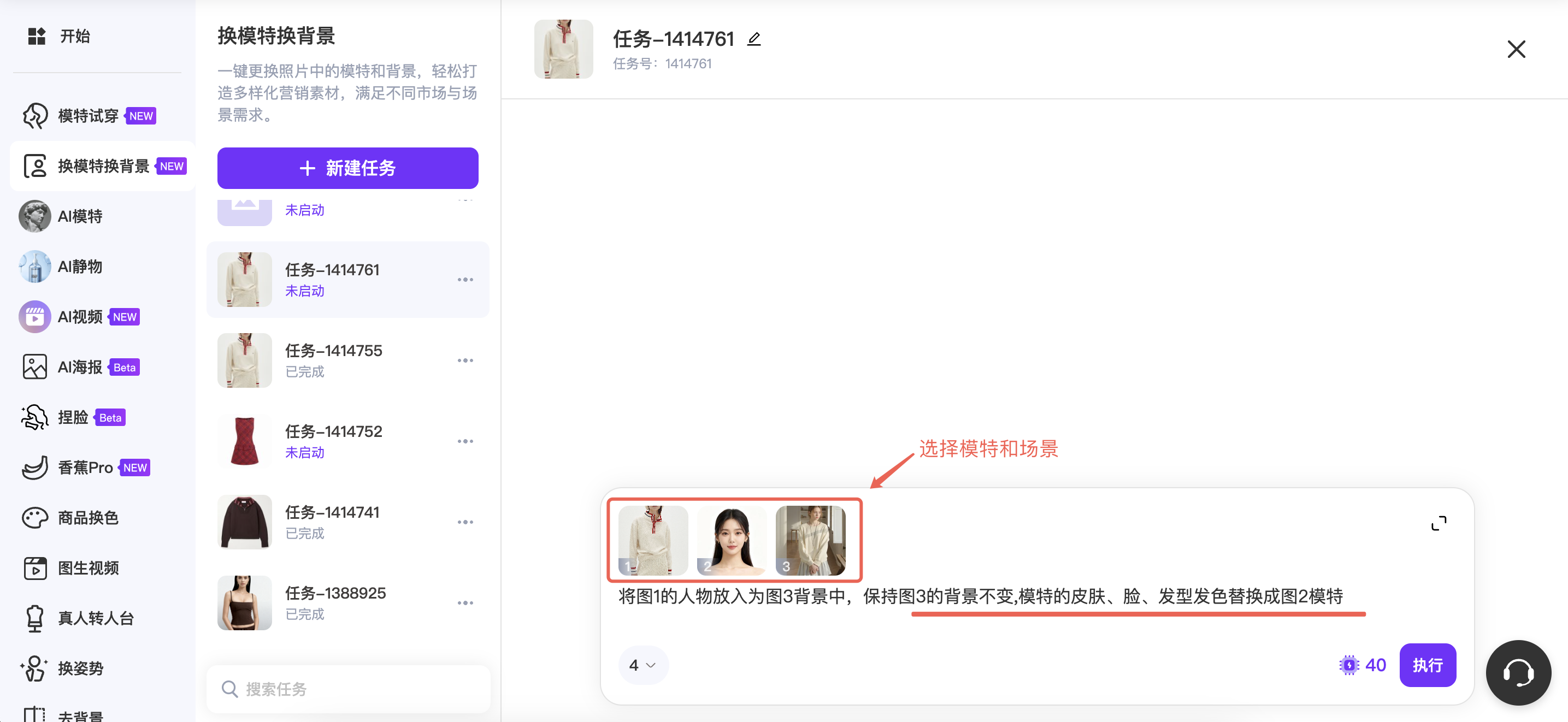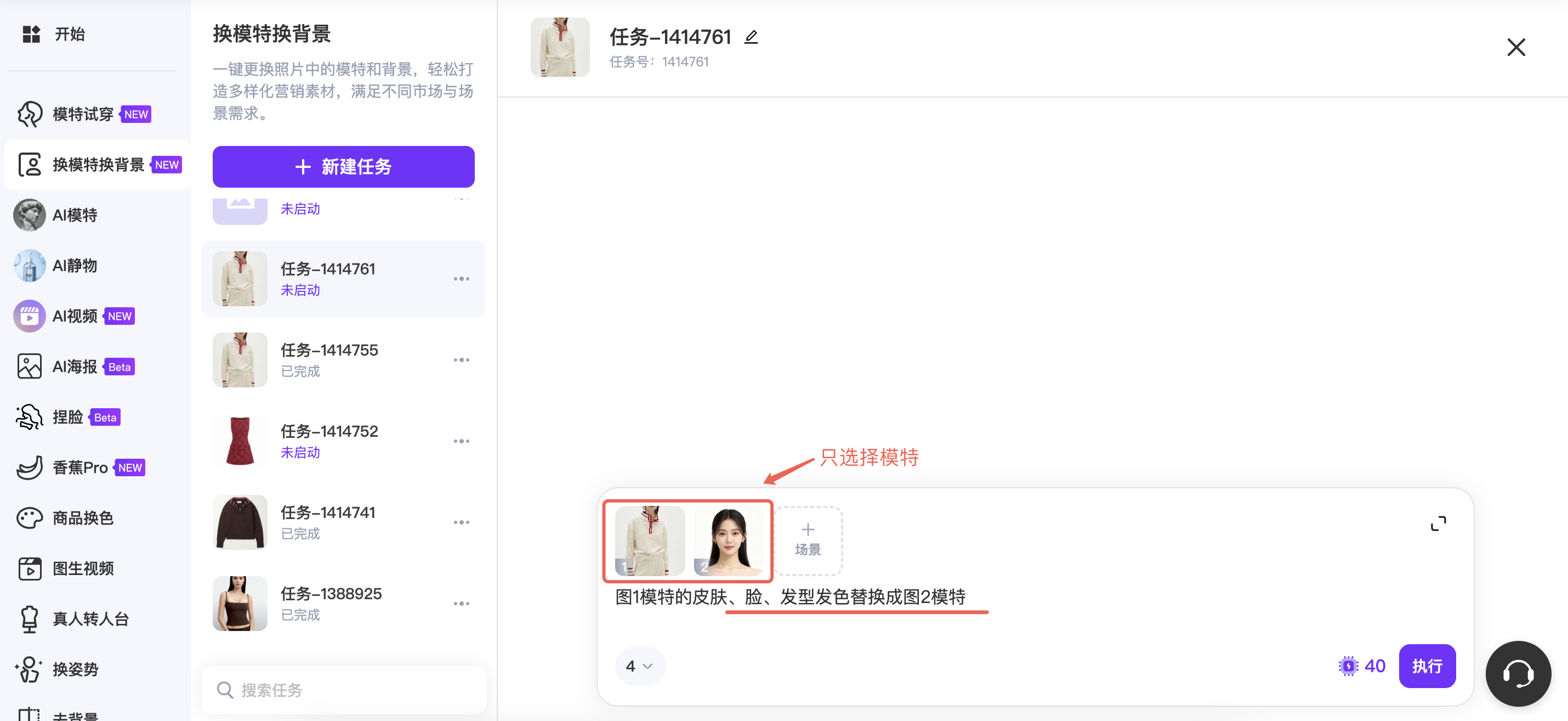 - 操作更简单:无需复杂设置,一步完成换模特、换背景,新手也能快速上手